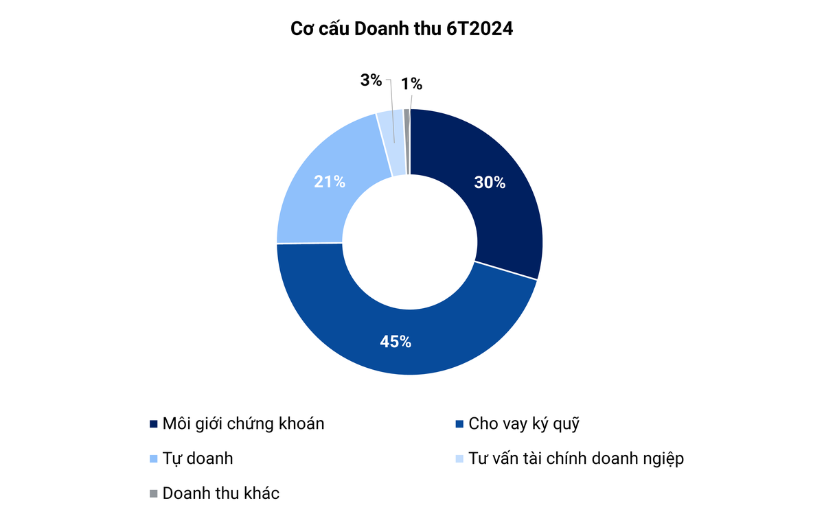 Doanh thu từ hoạt động tự doanh đạt 334 tỷ đồng, tăng 20% so với cùng kỳ năm 2023. Riêng trong quý 2/2024, doanh thu hoạt động này đạt hơn 170 tỷ đồng và là mức cao nhất trong 5 quý liền kề gần đây.
