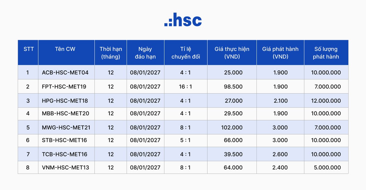 Trước đó, Công ty Cổ phần Chứng khoán Thành phố Hồ Chí Minh đã nhận được Giấy chứng nhận chào bán chứng quyền có bảo đảm do UBCKNN cấp ngày 06/01/2026.