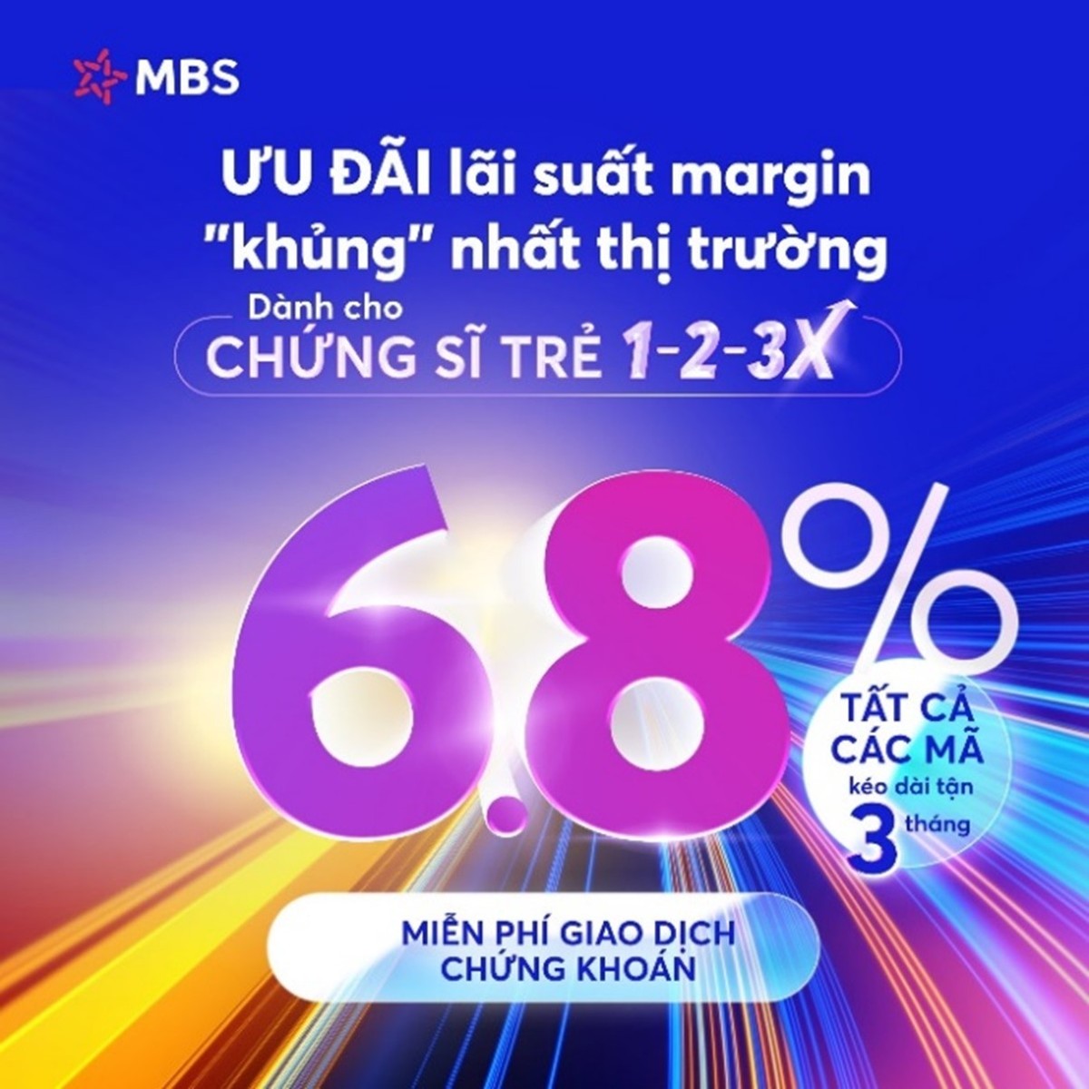 Chính vì thế, MBS đã cho ra mắt combo ưu đãi “khủng” bậc nhất thị trường dành cho các khách hàng trong độ tuổi từ 16 - 40. Với chính sách này, các chứng sĩ trẻ sẽ vừa được miễn phí giao dịch, vừa được hưởng mức lãi suất margin chỉ 6,8% áp dụng cho tất cả các mã và kéo dài tận 3 tháng nếu sử dụng dịch vụ giao dịch chủ động MBS online. (chi tiết Chương trình xem tại đây)
