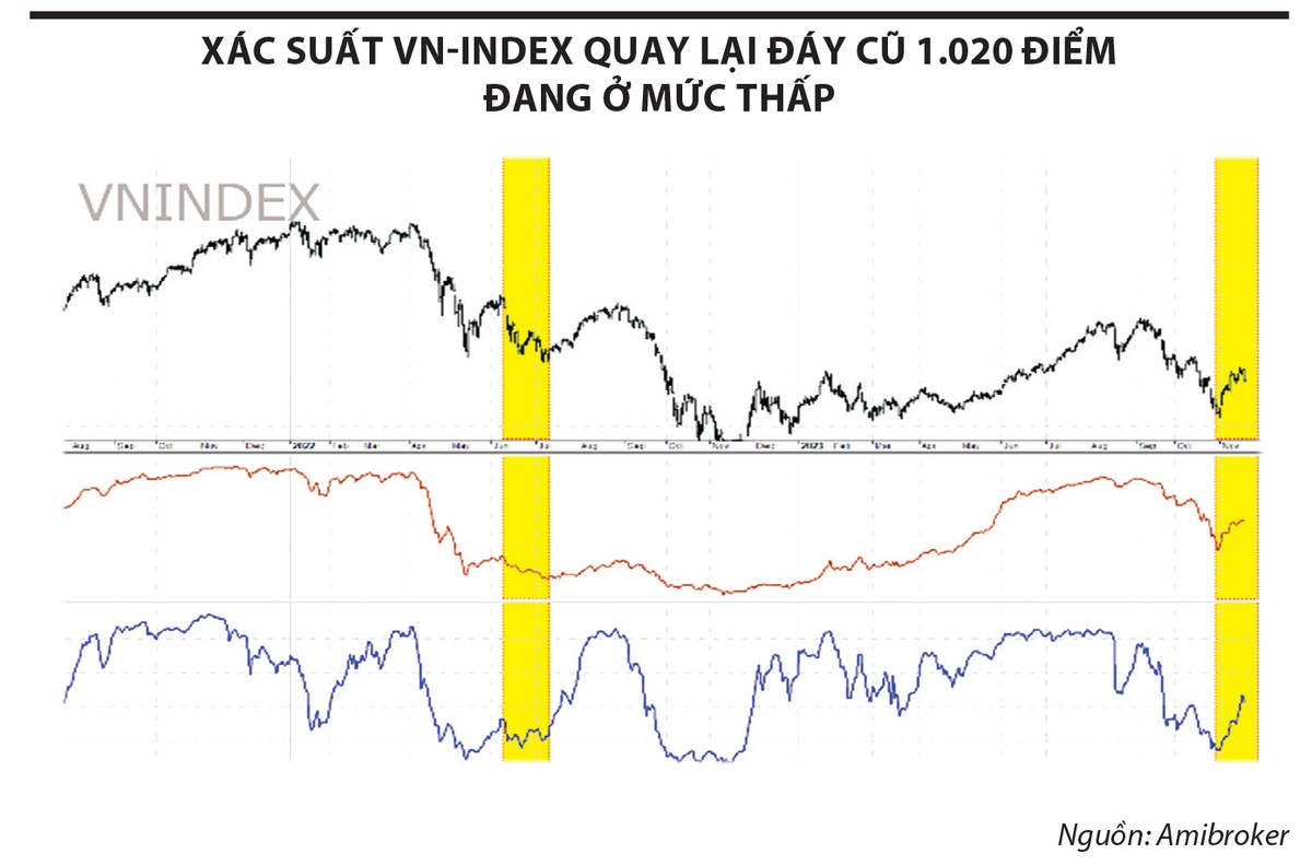 Vấn đề được nhiều nhà đầu tư quan tâm lúc này là xác suất xảy ra kịch bản VN-Index quay về vùng đáy gần nhất 1.020 điểm là cao hay thấp?
