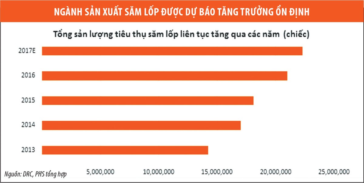 Liên quan đến các nhóm ngành, ông Phạm Ngọc Phú cho hay, thị trường cao su có nhiều biến động mạnh, nhưng ngành sản xuất săm lốp vẫn được dự báo tăng trưởng ổn định, đặc biệt là mảng săm lốp xe máy có khả tăng trưởng 6% trong các năm tới. Động lực tăng trưởng chính trong dài hạn sẽ là mảng săm lốp ô tô do nhu cầu sở hữu xe cá nhân cùng chính sách của Chính phủ ủng hộ cho ngành. Ngoài ra, nhu cầu cho xuất khẩu được dự báo tích cực khi doanh số tiêu thụ xe trên thế giới tăng trưởng trở lại.