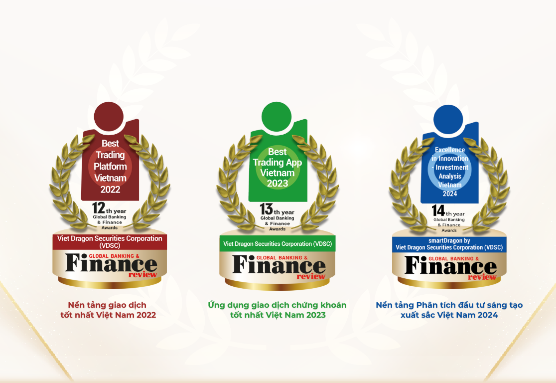 Từ năm 2022 đến nay, Chứng khoán Rồng Việt liên tục ghi dấu ấn tại giải thưởng quốc tế thường niên Global Banking & Finance với các danh hiệu về sản phẩm dịch vụ và tư vấn đầu tư như “Nền tảng giao dịch tốt nhất Việt Nam 2022”, “Ứng dụng giao dịch tốt nhất Việt Nam 2023”, “Nền tảng Phân tích đầu tư sáng tạo xuất sắc Việt Nam 2024” và mới đây nhất là “Dịch vụ Phân tích và Tư vấn đầu tư tốt nhất Việt Nam 2025”.