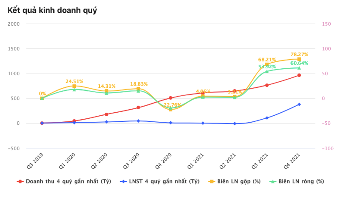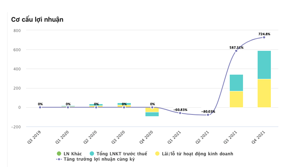 Ước tính cả năm 2021, doanh thu hoạt động đạt gần 960 tỷ đồng, vượt chỉ tiêu gấp 2,35 lần so với kế hoạch điều chỉnh là 200 tỷ đồng, luỹ kế lợi nhuận trước thuế đạt 472 tỷ đồng.
