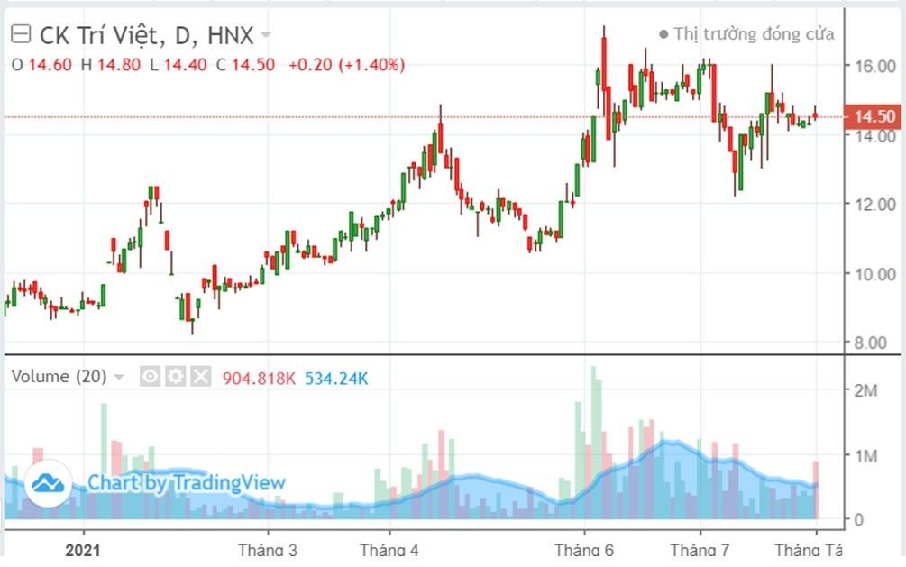 Trong 6 tháng đầu năm, giá cổ phiếu TVB đã tăng gần 1,5 lần lên mức quanh 14.500 đồng vào thời điểm hiện nay. So với mức tăng giá của cổ phiếu các công ty chứng khoán từ đầu năm đến nay gấp 2 đến 3 lần thì mức tăng giá của cổ phiếu TVB là thấp, chưa phản ánh tiềm năng tăng trưởng của cổ phiếu.
