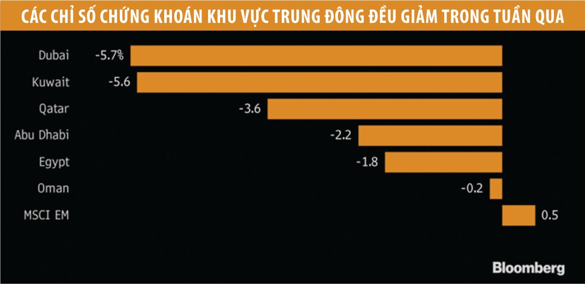 Bên cạnh đó, việc căng thẳng gia tăng trong khu vực cũng khiến các chỉ số chứng khoán chính tại Abu Dhabi và Dubai lao dốc liên tiếp trong 6 phiên, mức dài nhất kể từ tháng 5/2016, trong khi các chỉ số tại Kuwait và Bahrain giảm 3 trong số 4 phiên gần nhất, xuống mức thấp nhất kể từ tháng 1/2017.