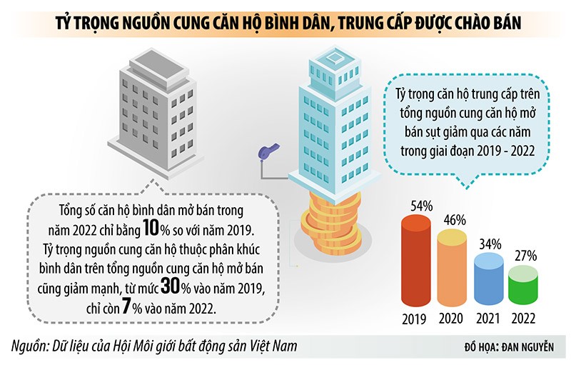 Hiện tại, số lượng dự án nhà ở thương mại được cấp phép mới rất ít và có xu hướng sụt giảm, nhất là dự án ở phân khúc bình dân, trung cấp.