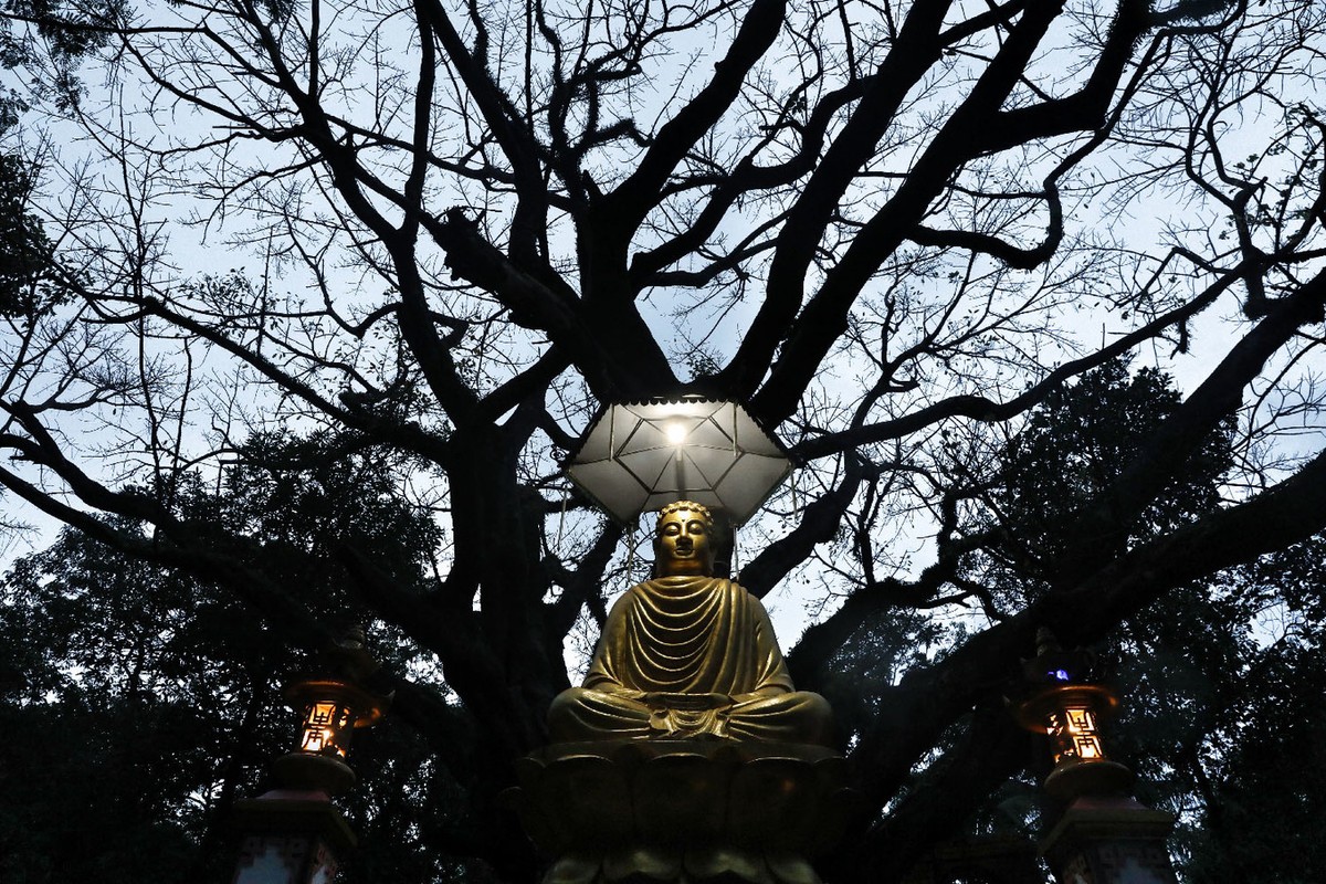 Tượng Phật trong khuôn viên chùa. Đây từng là nơi đàm đạo, xướng họa thơ ca của nhiều thi sĩ.