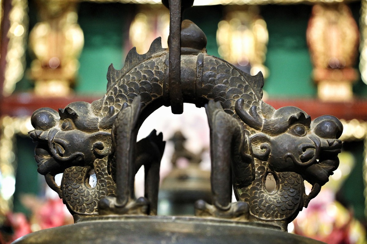 Hoa văn hình rồng được trạm trổ tinh xảo trên đỉnh chuông.