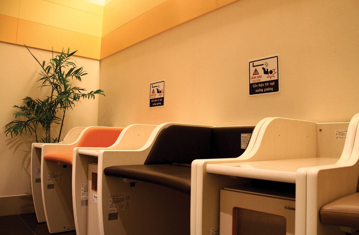 Với các bà mẹ, việc cho con bú, thay tã lót, thay bỉm chỗ đông người mang đến nhiều phiền toái. Tiện ích nội khu này giải quyết toàn bộ những vấn đề đó. Những chiếc ghế dài với hoa lá trang trí và ánh sáng dịu nhẹ, những phòng riêng kín đáo mang đến cảm giác riêng tư, thoải mái. Các bàn thay tã, thay bỉm được thiết kế với chiều cao hợp lý, có chia ô và vách ngăn giúp đảm bảo an toàn cho bé, thuận lợi cho mẹ.