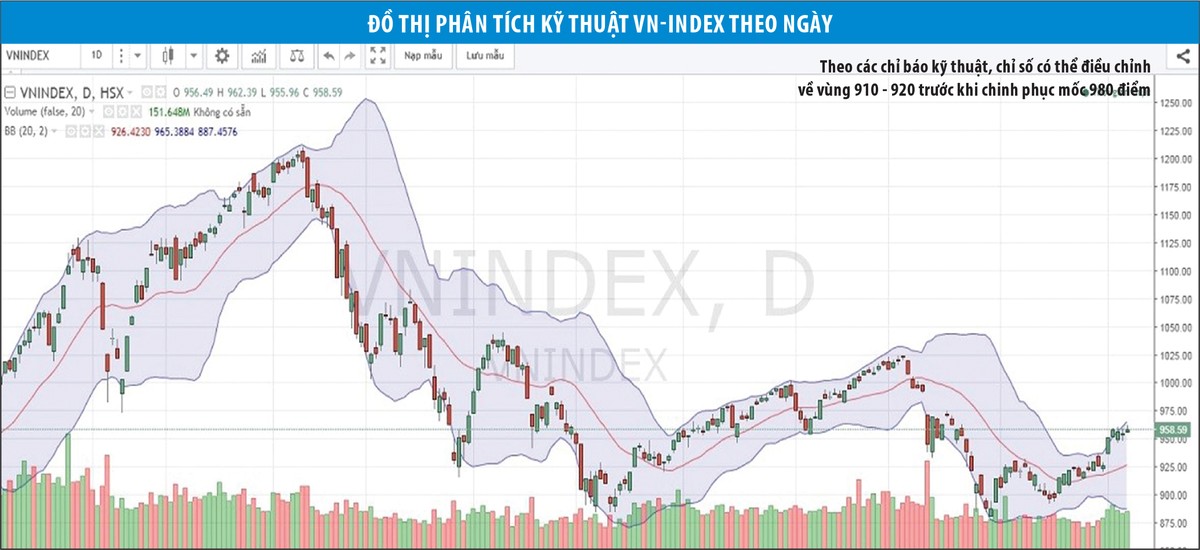 Theo các chỉ báo kỹ thuật, chỉ số có thể điều chỉnh về vùng 910 - 920 trước khi chinh phục mốc 980 điểm