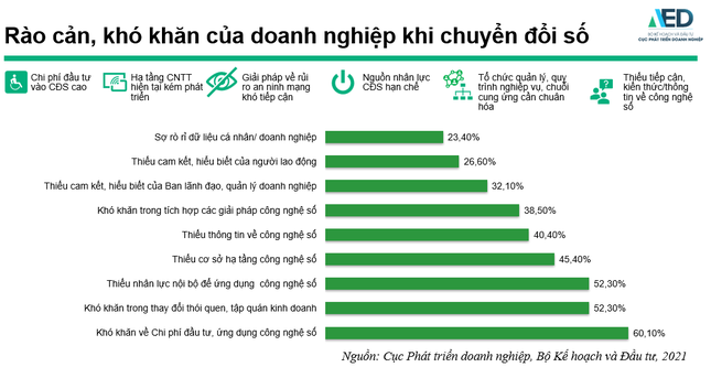 Theo kết quả khảo sát tại Báo cáo thường niên Chuyển đổi số doanh nghiệp do Bộ Kế hoạch và Đầu tư thực hiện, các doanh nghiệp đã có những chuyển biến rõ rệt trong nhận thức về sự cần thiết của chuyển đổi số. Nhiều doanh nghiệp đã bước vào giai đoạn số hóa dữ liệu, chuẩn hóa quy trình, ứng dụng công nghệ số và tiến tới chuyển đổi số ở phạm vi rộng và đồng bộ hơn.