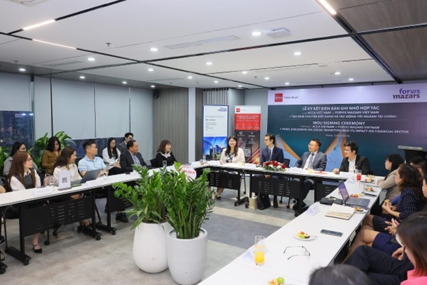 Tại lễ ký kết Biên bản Ghi nhớ (MoU) giữa Hiệp hội Kế toán Công chứng Anh Quốc (ACCA) và Forvis Mazars Việt Nam tại Hà Nội vào ngày 3/12, một buổi tọa đàm về chuyển đổi xanh và tác động của nó đối với lĩnh vực tài chính đã diễn ra.
