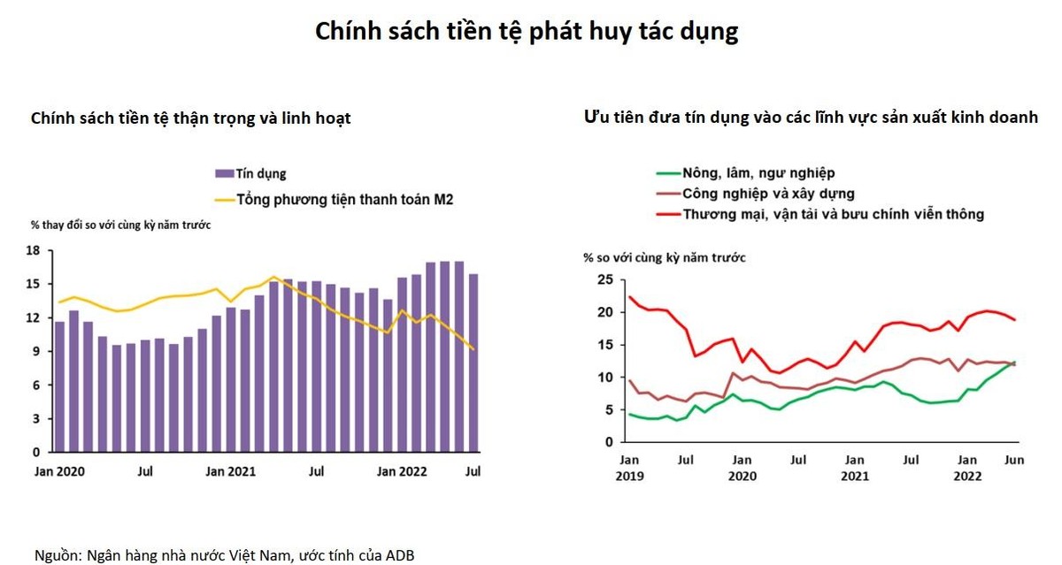 Theo báo cáo đánh giá của ADB, Ngân hàng Nhà nước với vai trò là ngân hàng trung ương, đã duy trì thành công chính sách tiền tệ mở rộng nhưng linh hoạt, tạo điều kiện cho vay vốn với chi phí thấp nhằm hỗ trợ phục hồi kinh tế đồng thời kiềm chế lạm phát.