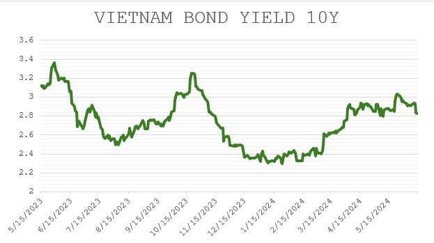Tình hình vĩ mô trong nước không có biến chuyển quá lớn và có thể nói là đang duy trì sự ổn định cần thiết. Điều này được thể hiện qua chỉ báo vĩ mô ưa thích của chúng tôi là lợi suất trái phiếu chính phủ Việt Nam 10 năm liên tục điều chỉnh trong thời gian gần đây.