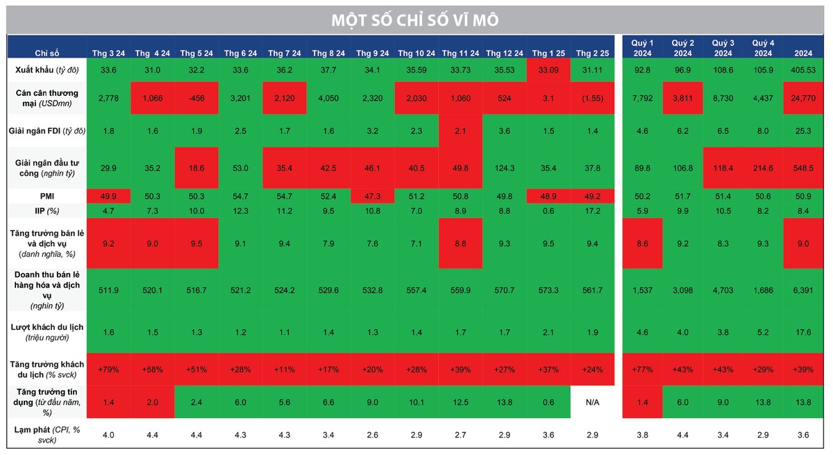 Đặc biệt, các số liệu vĩ mô tiếp tục phát đi tín hiệu tích cực, củng cố niềm tin vào đà phục hồi của nền kinh tế. Trong đó, chỉ tiêu tín dụng tháng 2/2025 được phân bổ ở mức cao, báo hiệu sự gia tăng cung tiền, qua đó hỗ trợ dòng vốn chảy vào thị trường chứng khoán.