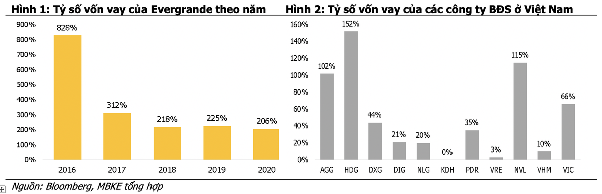 Ở chủ đề thứ hai, với những đánh giá bước đầu, MBKE cho rằng, việc so sánh câu chuyện của Evergrande với một số doanh nghiệp có ngành nghề kinh doanh tương đồng tại Việt Nam là không thật sự phù hợp.