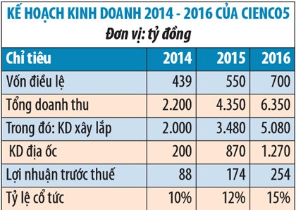 Tại thời điểm 30/6/2013, giá trị thực tế của Cienco5 là 1.041,8 tỷ đồng, trong đó giá trị phần vốn nhà nước là 438,2 tỷ đồng. Tổng công ty chọn hình thức "kết hợp vừa bán một phần vốn nhà nước hiện có tại DN vừa phát hành thêm cổ phiếu để tăng vốn điều lệ”. Dự kiến, vốn điều lệ của Cienco5 khi chuyển thành CTCP là 439 tỷ đồng, trong đó Nhà nước nắm giữ 35%.