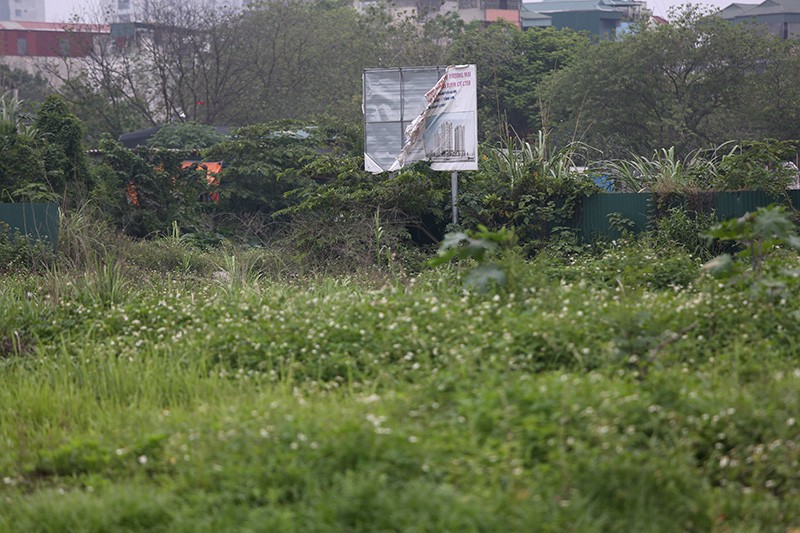 Khu vực dự kiến xây dựng nhà tái định cư cho cư dân tại chỗ nằm trong khu đô thị Thịnh Liệt hiện vẫn đang là bãi đất hoang cỏ mọc quá đầu
