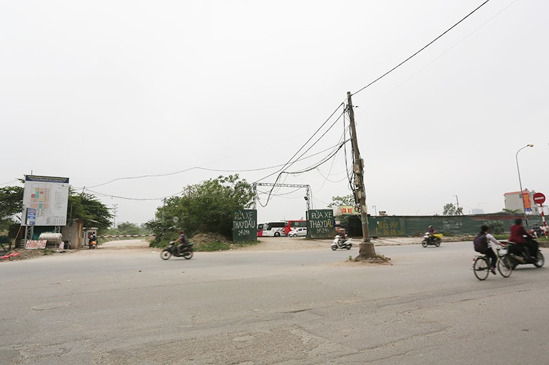 Lối vào dự án khu đô thị Thịnh Liệt có rào chắn lối, nằm trên đường Tân Mai, quận Hoàng Mai, Hà Nội chỉ rộng bằng cổng bãi rửa xe bên cạnh đó