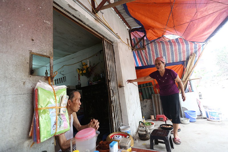 Gia đình bà Nguyễn Thị Lan sống tại tổ 42 phường Thịnh Liệt là những người đầu tiên giao nhà giải phóng mặt bằng. Nhưng sau 3 năm, ông bà vẫn phải sống tạm bợ trong căn nhà xuống cấp