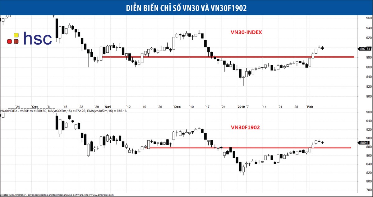 Chúng tôi đánh giá, chỉ số VN30F1902 đang hình thành 2 vùng giá quan trọng là kháng cự 895 - 900 điểm và vùng hỗ trợ 880 - 881 điểm và khả năng trong ngắn hạn, chỉ số sẽ còn có những rung lắc khi tiếp cận kháng cự. Do đó, chiến lược Short (bán) khi giá tiếp cận vùng 895 - 900 điểm có thể được ưu tiên trong những phiên đầu tuần. Ngoài ra, trong trường hợp giá quay trở lại vùng hỗ trợ 880 - 881 điểm thì sẽ là cơ hội để tìm kiếm điểm Long (mua) cho mục tiêu nắm giữ dài ngày.