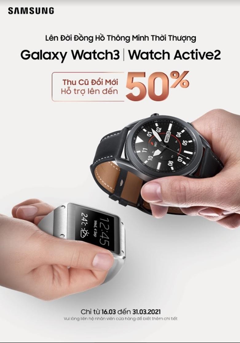 Để tham gia chương trình, người dùng chỉ cần mang đồng hồ thông minh hoặc vòng đeo tay Samsung đến các cửa hàng bán lẻ có áp dụng chương trình để nhận mức ưu đãi trợ giá lên đến 50% là có thể sở hữu ngay Galaxy Watch 3 hoặc Galaxy Watch Active2.