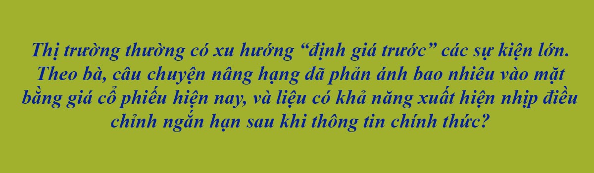 Sau những phản ứng ban đầu, câu hỏi đặt ra lúc này sẽ là chúng ta còn điểm nghẽn nào chưa xử lý để thỏa mãn các điều kiện nâng hạng. Mang tính định lượng hay định tính? Và khả năng xử lý triệt để là trong bao lâu? Đó sẽ là vấn đề nhà đầu tư quan tâm hơn cả, vì nó sẽ cho biết lộ trình tiếp theo đối với việc nâng hạng của Việt Nam là khi nào?