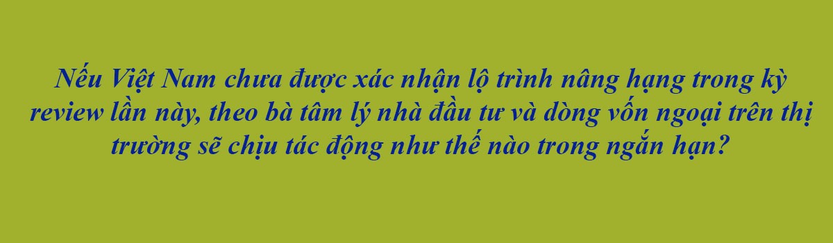 Trong bối cảnh thị trường hiện đang kỳ vọng về khả năng được nâng hạng là rất cao, khả năng thất bại đang được đánh giá là 0%, nếu kịch bản chưa được FTSE Russell xác nhận lộ trình xảy ra, tâm lý nhà đầu tư ngắn hạn chắc chắn sẽ bị ảnh hưởng, có thể xuất hiện nhịp điều chỉnh nhất định ở các nhóm cổ phiếu đã tăng trước theo kỳ vọng nâng hạng như chứng khoán, ngân hàng và bluechips. Đây là những cổ phiếu vốn hóa lớn, vì vậy, sẽ tác động tiêu cực tới điểm số của thị trường. Từ đó, kéo theo tâm lý tiêu cực của nhà đầu tư cá nhân.
