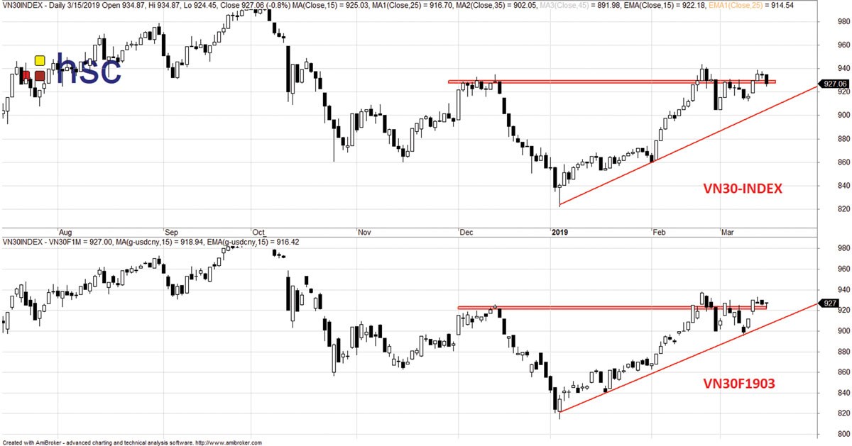 Phái sinh và cơ sở diễn biến khá đồng thuận trong tuần vừa qua, tuy vậy giá phái sinh vẫn chưa chạy trước cơ sở cho thấy tâm lý của nhà đầu tư vẫn khá thận trọng khi chỉ số đã tăng được một khoảng rất dài.