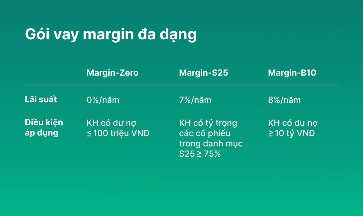 (i) Margin-S25 - lãi suất 7%: dành cho khách hàng có tỷ trọng các cổ phiếu nằm trong danh mục S25 từ 75% trở lên.
