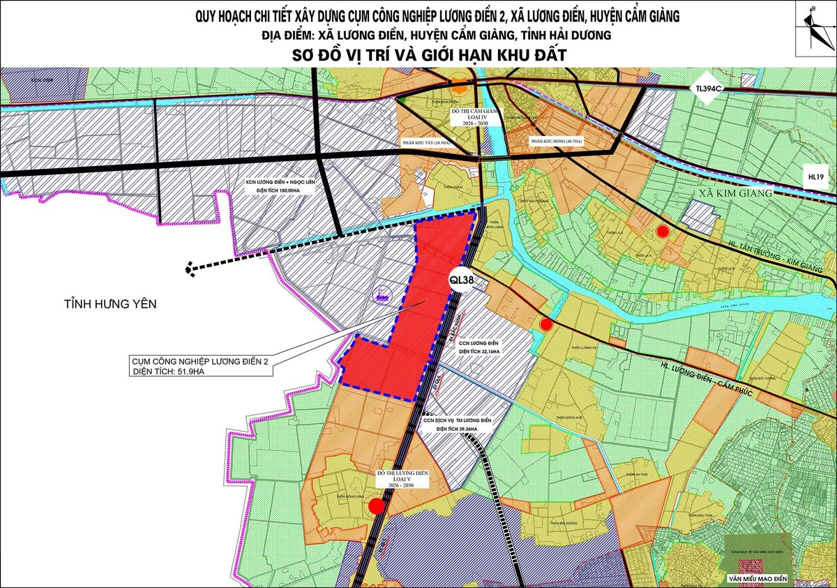 Cụm công nghiệp có quy mô 51,9 ha với ranh giới: Phía Bắc giáp lưu không sông Bần – Vũ Xá; Phía Nam giáp đất dự kiến quy hoạch khu dân cư thương mại Đông Giao, xã Lương Điền; Phía Đông giáp dân cư hiện trạng quốc lộ 38; Phía Tây giáp đất quy hoạch cụm công nghiệp Lương Điền 3 và đất xã Hòa Phong, thị xã Mỹ Hào, tỉnh Hưng Yên.
