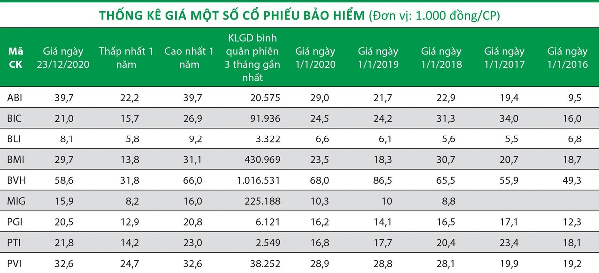 Năm nay, nhóm cổ phiếu bảo hiểm có diễn biến khá trầm lắng cả về giá và thanh khoản. Một số cổ phiếu trước đây thường đi đầu trong các nhịp tăng của thị trường như BVH, BIC, BMI cũng có mức tăng giá khiêm tốn. Có vẻ như dòng tiền chỉ lướt qua nhóm cổ phiếu bảo hiểm, mặc dù ngành này vẫn tạo được dấu ấn tích cực trong hoạt động kinh doanh.