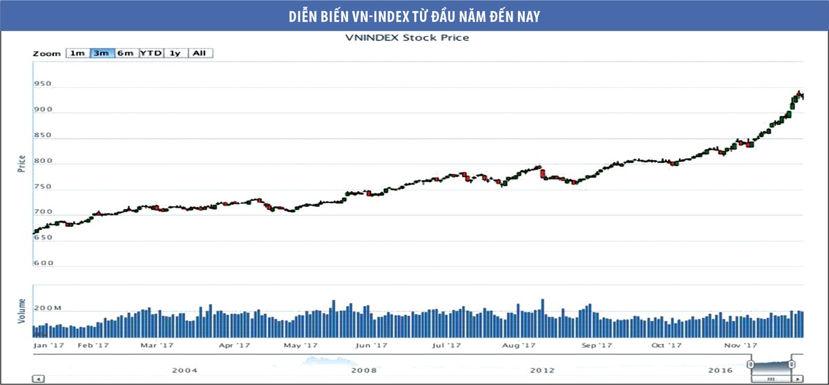 Cũng giống như thế giới, cổ phiếu trong lĩnh vực tài chính, cụ thể là cổ phiếu ngân hàng, đang là tâm điểm chú ý của dòng tiền nhờ tăng trưởng tín dụng mạnh. Tương tự, cổ phiếu nhóm ngành bất động sản - xây dựng cũng nằm trong nhóm hấp dẫn vì đang được định giá rẻ tương đối so với nhóm cổ phiếu vốn hóa lớn và được kỳ vọng đạt lợi nhuận tích cực trong quý IV/2017.