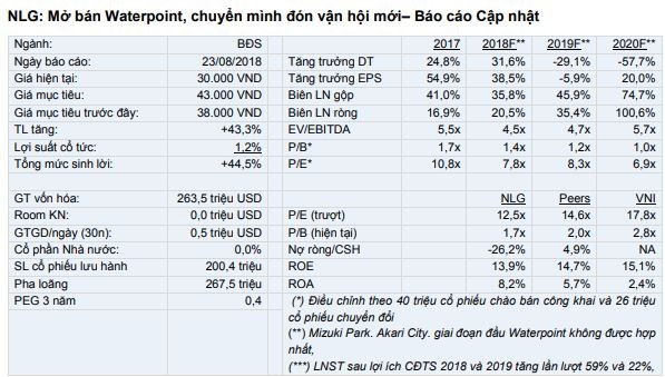 Trên cơ sở sau đợt chào bán cổ phiếu và chuyển đổi cổ phiếu, định giá của NLG rất hấp dẫn với P/B 2018 là 1,4 lần, P/E 7,8 lần và PEG 3 năm là 0,4.