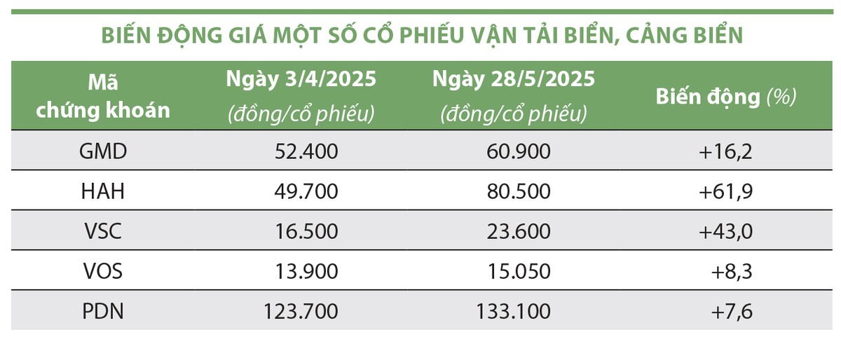 Ngoài ra, bức tranh kinh doanh khởi sắc trong quý I cũng như quý II/2025 giúp duy trì sức hút của nhóm cổ phiếu cảng biển và vận tải biển. Tuần qua, dòng tiền đổ vào nhóm này tăng cao, một số mã như HAH, GMD, VOS bật tăng, trong đó có phiên 27/5 đồng loạt tăng trần.