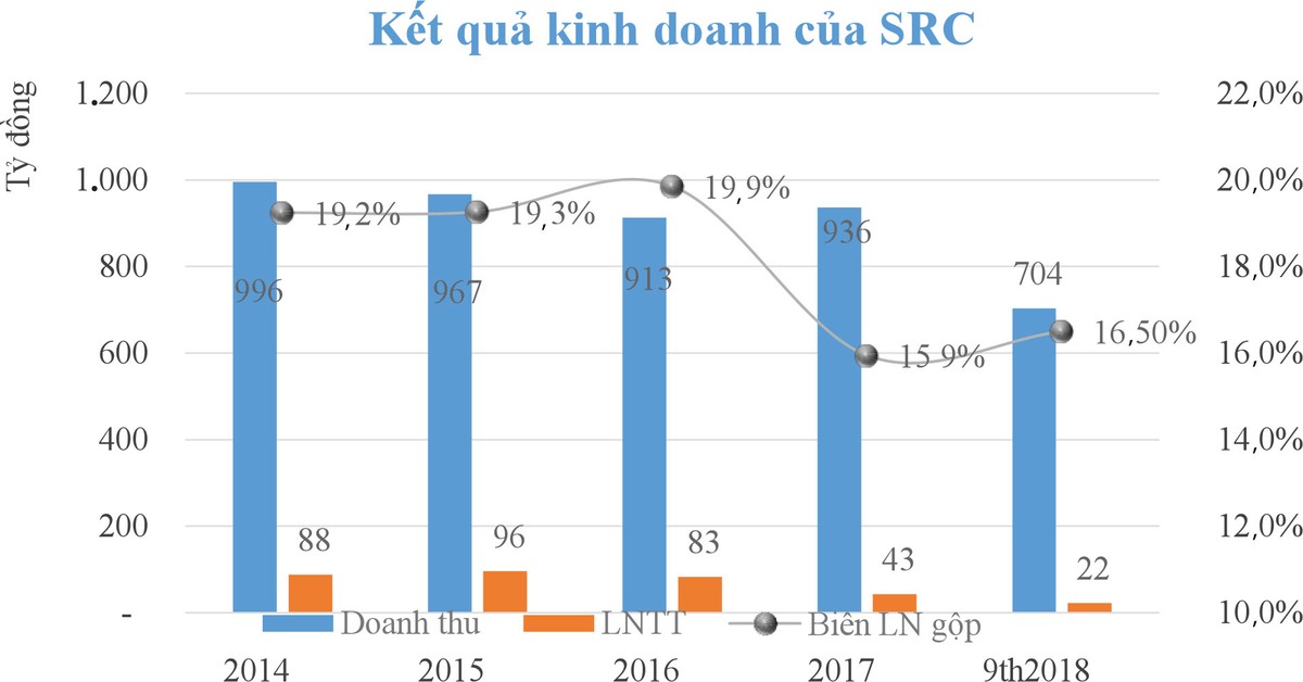 Với kết quả này, dù đã hoàn thành 76% kế hoạch doanh thu, SRC mới chỉ hoàn thành 60% kế hoạch lợi nhuận cả năm 2018 sau 9 tháng. Trong bối cảnh tình hình kinh doanh không có nhiều cải thiện, Hội đồng quản trị SRC chỉ đặt mục tiêu 223,9 tỷ đồng doanh thu và 7,71 tỷ đồng lợi nhuận trước thuế trong quý IV/2018. Như vậy, việc không hoàn thành kế hoạch kinh doanh cả năm của SRC là điều đã được dự báo trước.