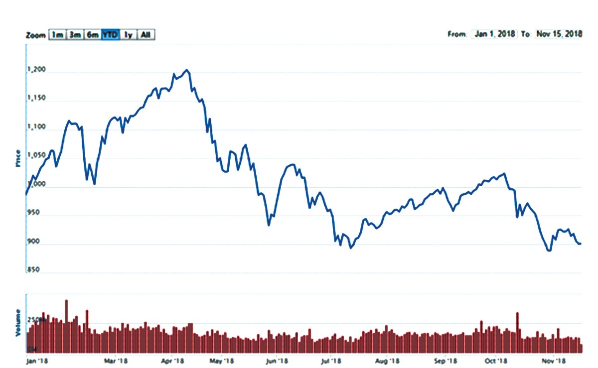 Trong khi đó, thị trường chứng khoán Việt Nam thời gian qua điều chỉnh sâu, nhiều cổ phiếu giảm giá mạnh. VN-Index lập đỉnh 1.204 điểm vào ngày 9/4/2018, sau đó giảm xuống dưới 900 điểm trong tháng 7. Trải qua một số đợt tăng giảm, chỉ số hiện dao động quanh ngưỡng 900 điểm. Điểm số đang ở vùng đáy trong 1 năm qua, nhưng thanh khoản thị trường suy yếu cho thấy, nhiều nhà đầu tư vẫn thận trọng với kênh đầu tư này.