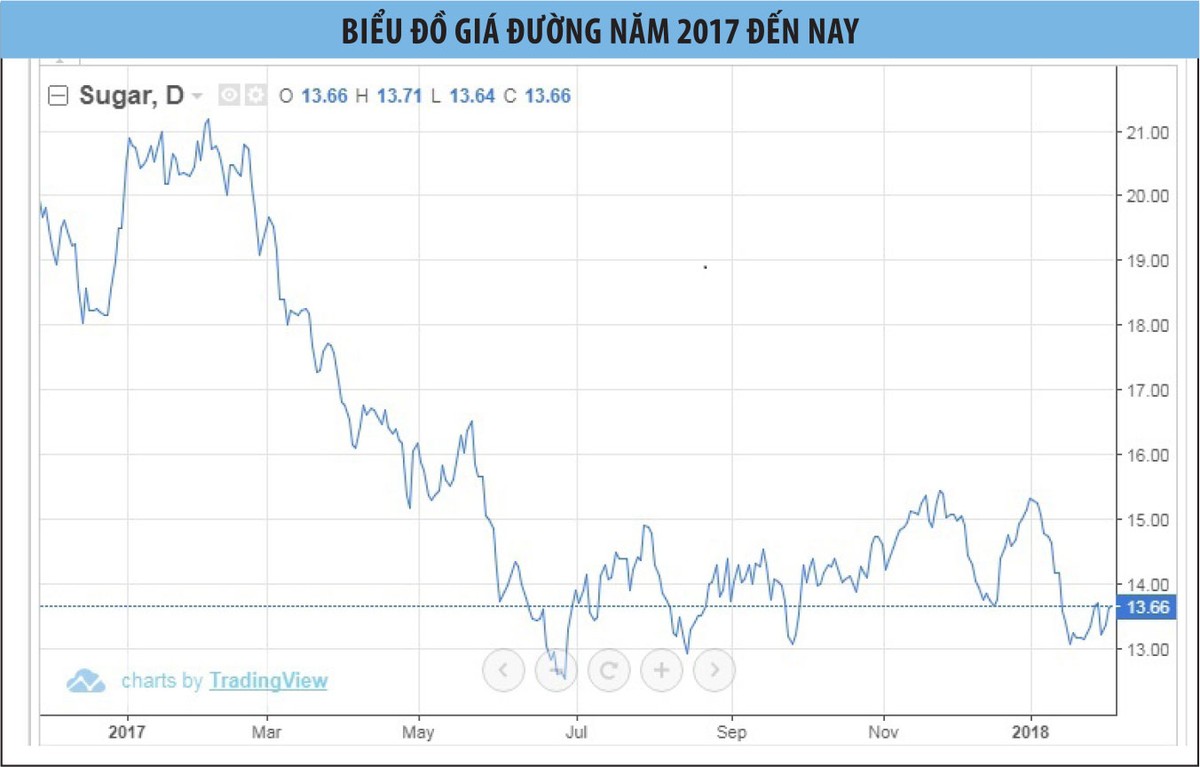 Theo số liệu của trang web nghiên cứu thống kê Trading Economics, giá đường thế giới hiện đạt 13,6 USD/LB, giảm 11,1% so với thời điểm đầu năm 2018. Giá đường thế giới dự báo khó tăng trở lại trong bối cảnh thị trường đang bước vào giai đoạn bão hòa.