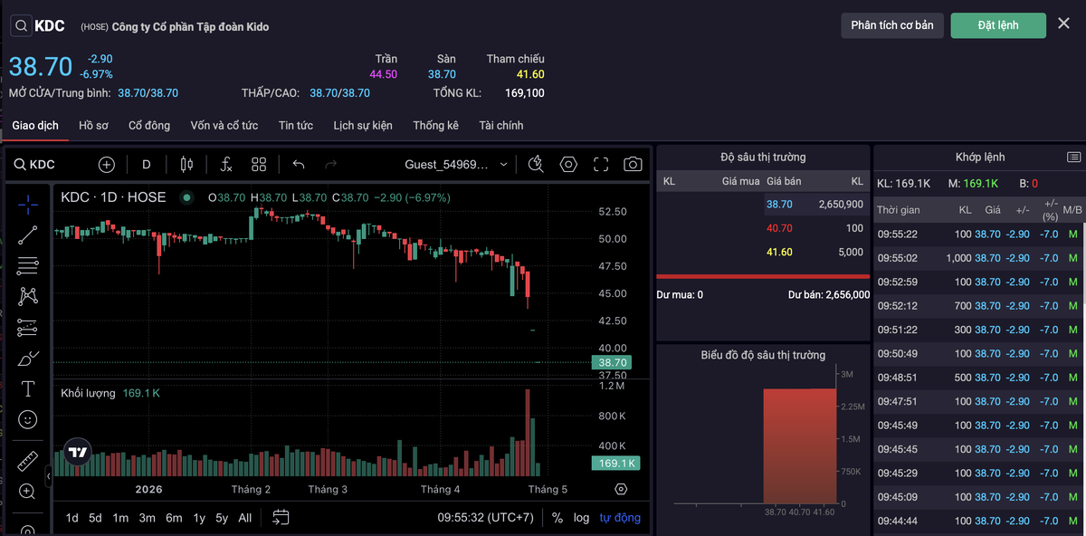 Tuy nhiên, trong 2 phiên giao dịch gần đây, cổ phiếu KDC đã có diễn biến bất thường. Sau phiên nằm sàn ngày 28/4, cổ phiếu KDC tiếp tục chịu áp lực thoát hàng quyết liệt của dòng tiền ngắn hạn. Tính đến 10h, cổ phiếu KDC vẫn còn dư bán sàn 2,65 triệu cổ phiếu, trắng bên mua.