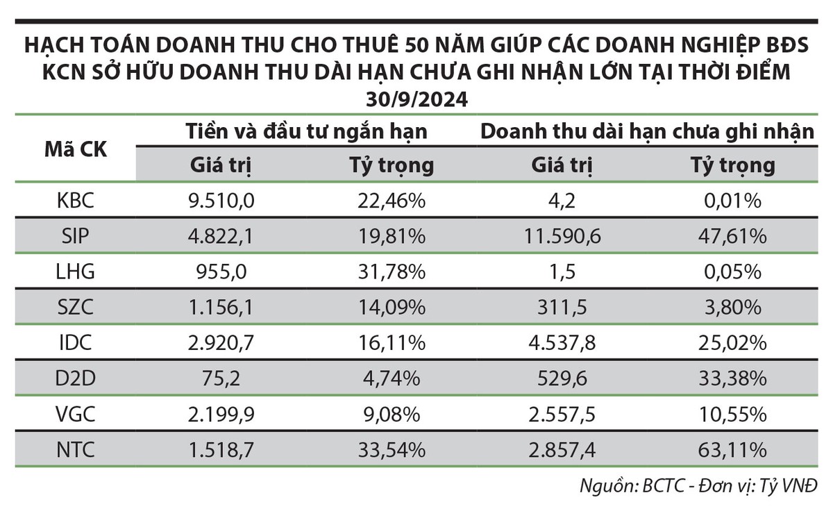 Được biết, khi đánh giá tiềm năng của một cổ phiếu bất động sản công nghiệp, nhà đầu tư thường quan tâm tới hai yếu tố chính: Thứ nhất, doanh thu dài hạn chưa ghi nhận - số tiền mà các đơn vị thuê đất trả tiền một lần và chờ ghi nhận, đây là “của để dành”, đảm bảo tăng trưởng dài hạn cho doanh nghiệp; thứ hai, quỹ đất sẵn sàng cho thuê, từ đó dự phóng doanh thu có thể ghi nhận trong những năm sắp tới.
