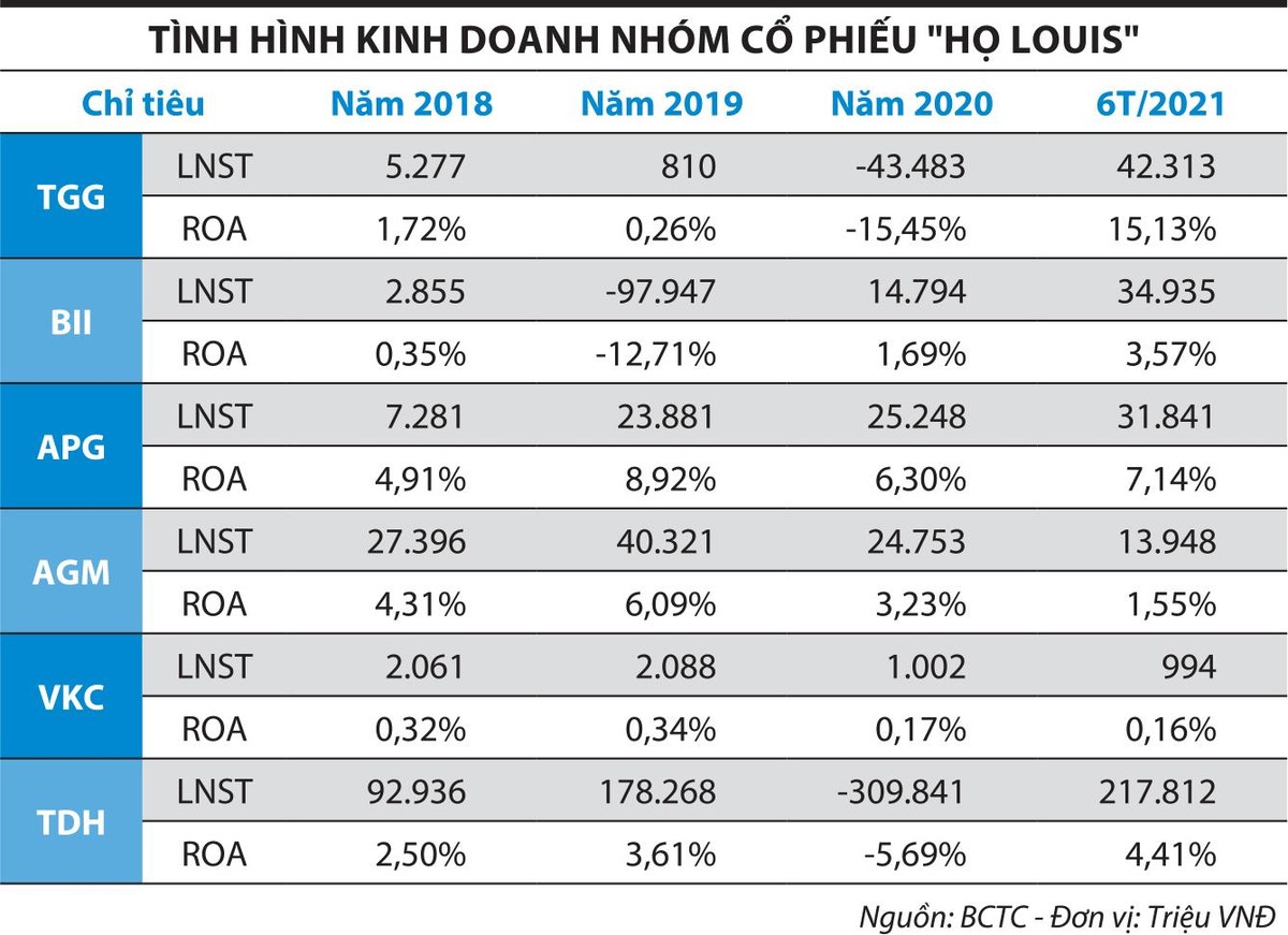 Thời gian qua, các cổ phiếu có liên quan tới nhóm Louis như TGG (Công ty cổ phần Louis Capital), APG (Công ty cổ phần Chứng khoán APG), BII (Công ty cổ phần Louis Land), AGM (Công ty cổ phần Xuất nhập khẩu An Giang, Angimex), VKC (Công ty cổ phần Cáp – Nhựa Vĩnh Khánh), TDH (Công ty cổ phần Phát triển Nhà Thủ Đức)… trở thành tâm điểm chú ý trên thị trường với biến động chóng mặt về giá và thanh khoản cả chiều lên và chiều xuống.