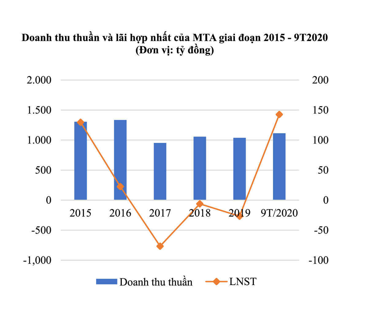 Bước sang năm 2020, tình hình kinh doanh của MTA đột nhiên khởi sắc. Ước tính 9 tháng đầu năm, doanh nghiệp đạt doanh thu trên 1.113 tỷ đồng, hoàn thành 90% kế hoạch năm; lợi nhuận sau thuế gần 143 tỷ đồng, vượt 286% kế hoạch năm.