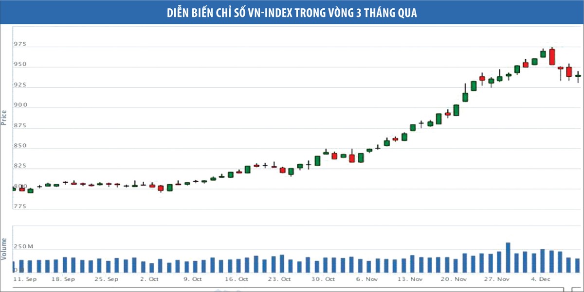Thị trường chứng khoán Việt Nam trải qua một tuần điều chỉnh sau khi tăng giá liên tục trong tháng 11, chỉ số VN-Index giảm 4% sau khi đã tăng khoảng 15%. Thanh khoản thị trường và mức biến động giảm dần trong 2 phiên cuối tuần cho thấy, tâm lý nhà đầu tư tạm thời ổn định trở lại.