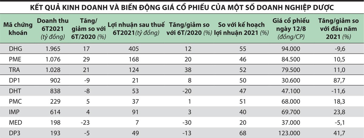 Trong 6 tháng đầu năm 2021, các doanh nghiệp đầu ngành dược giữ được đà tăng trưởng lợi nhuận, nhưng nhiều doanh nghiệp khác ghi nhận lợi nhuận đi ngang, thậm chí sụt giảm.