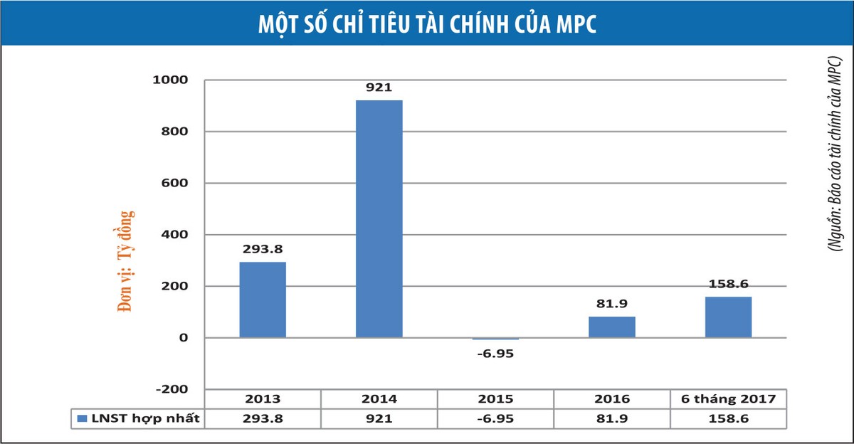 Năm 2016, MPC đạt doanh thu thuần 11.973,4 tỷ đồng, lãi sau thuế 81,89 tỷ đồng, chỉ hoàn thành 86,55% doanh thu và 17,59% kế hoạch lợi nhuận năm. 6 tháng đầu năm 2017, MPC ghi nhận doanh thu thuần 6.342 tỷ đồng và lợi nhuận ở mức 158,6 tỷ đồng, EPS đạt 2.306 đồng. Tổng tài sản tính đến 30/6/2017 đạt 8.356,19 tỷ đồng, vốn chủ sở hữu 2.437,6 tỷ đồng, với 958 tỷ đồng lợi nhuận chưa phân phối.