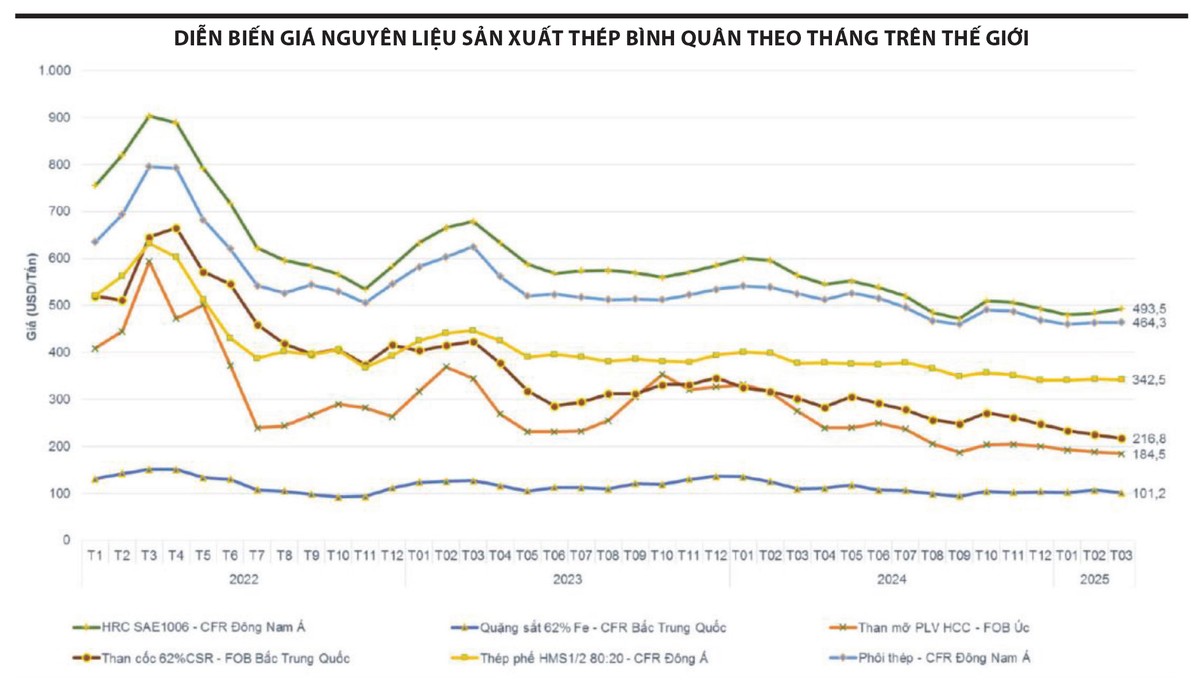Theo thống kê, giá nguyên liệu sản xuất thép như quặng sắt, than mỡ, than cốc, thép phế, phôi thép, HRC hiện tại thấp hơn từ 14 - 40% so với cùng kỳ năm ngoái. So với tháng 2, giá tăng không đáng kể, trong khi than mỡ và than cốc tiếp tục giảm nhẹ.
