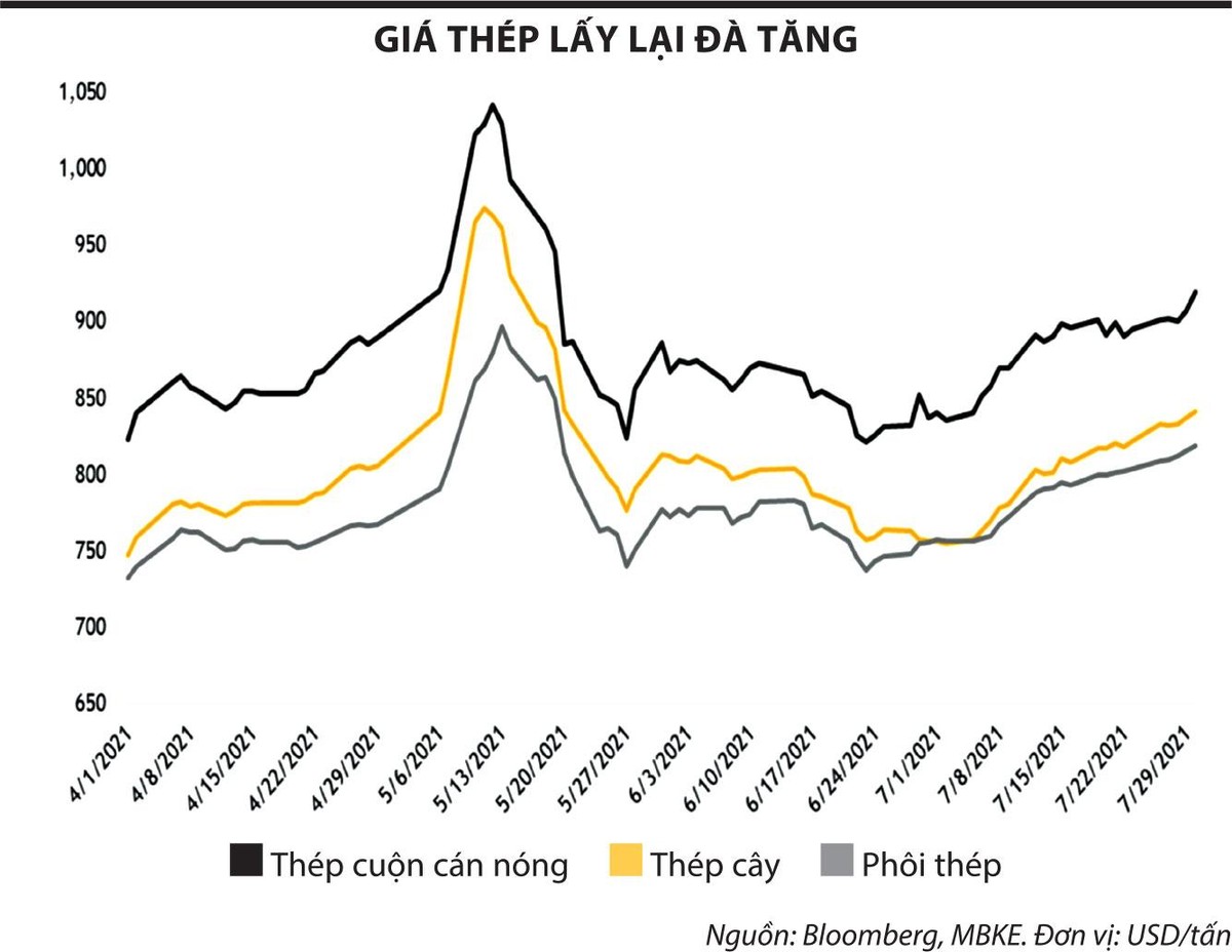 Công ty Chứng khoán Maybank Kim Eng (MBKE) cho rằng, giá thép giảm từ mức cao kỷ lục trong tháng 5/2021 phản ánh việc EU và Mỹ tăng cường sản xuất thép cho giai đoạn phục hồi kinh tế sau khi bị tác động nặng nề bởi dịch Covid-19. Bên cạnh đó, giá thép giảm còn do sự can thiệp của Chính phủ Trung Quốc trong việc ngăn chặn tình trạng đầu cơ ép giá.