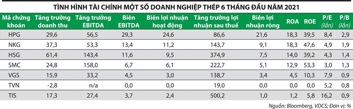 Công ty Chứng khoán Rồng Việt ước tính, lũy kế 6 tháng đầu năm 2021, 98% doanh nghiệp thép mà Công ty theo dõi gần như hoàn thành kế hoạch lợi nhuận cả năm, có doanh nghiệp thực hiện vượt mức kế hoạch năm, dù kế hoạch này cao hơn nhiều năm ngoái.