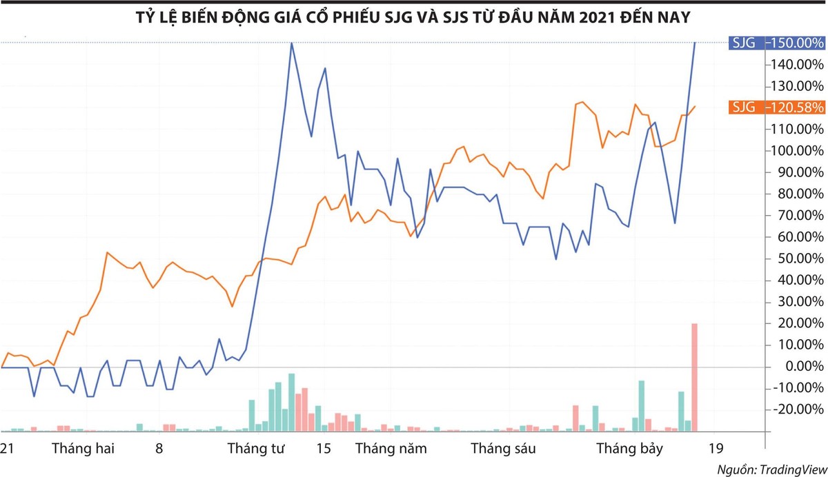 Thông tin thoái vốn tác động lên cả cổ phiếu SJG khi mã này liên tục tăng giá mạnh, dù thị trường chung gần đây “đỏ lửa”. So với đầu năm, cổ phiếu SJG đã tăng giá 150%, đạt 14.900 đồng/cổ phiếu vào ngày 15/7.