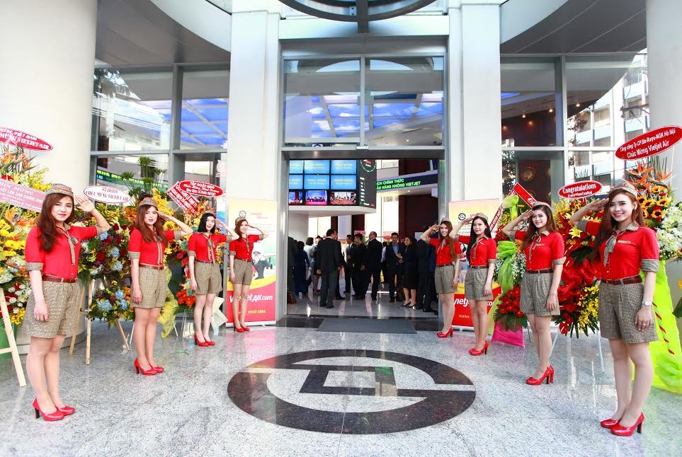 Các cô gái xinh đẹp Vietjet trong buổi lễ niêm yết cổ phiếu VJC